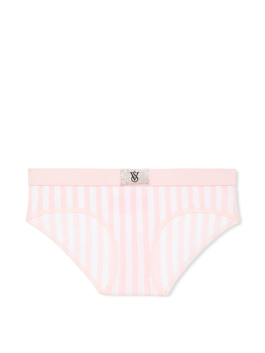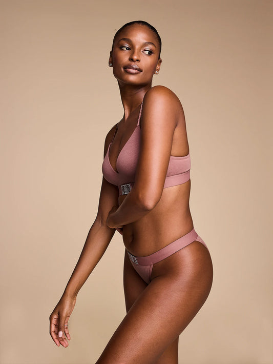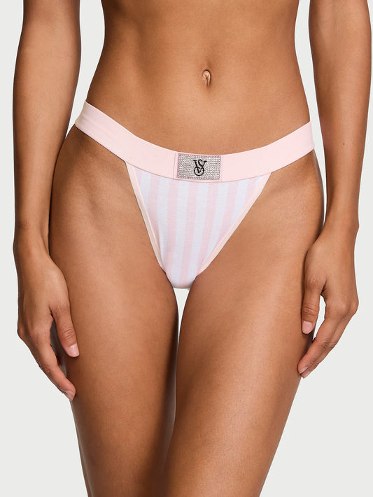 Shine Patch Logo Cotton Tanga Panty, Vintage Rose
