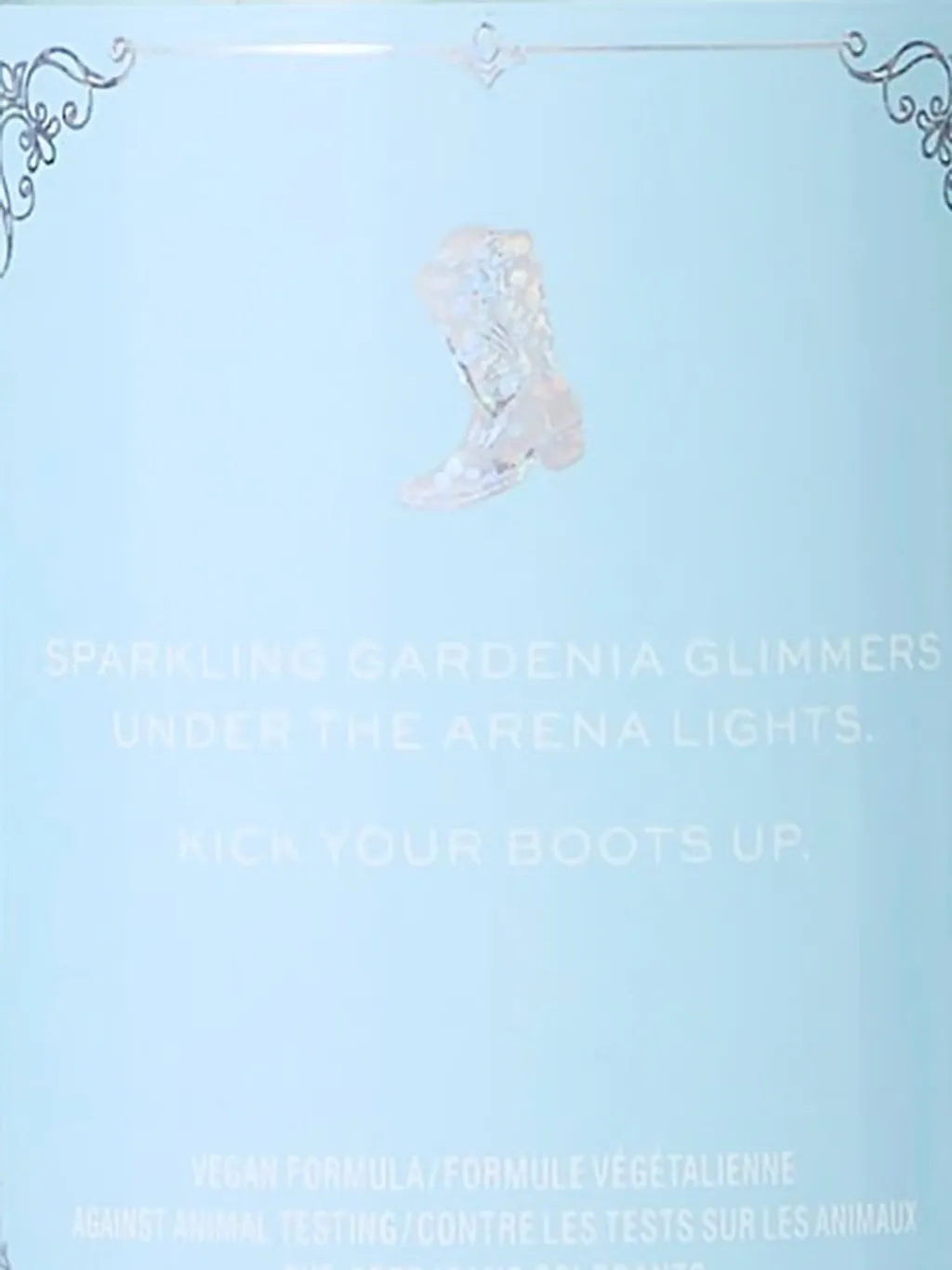 Sparkling gardenia glimmers under the arena lights. Kick your boots up.