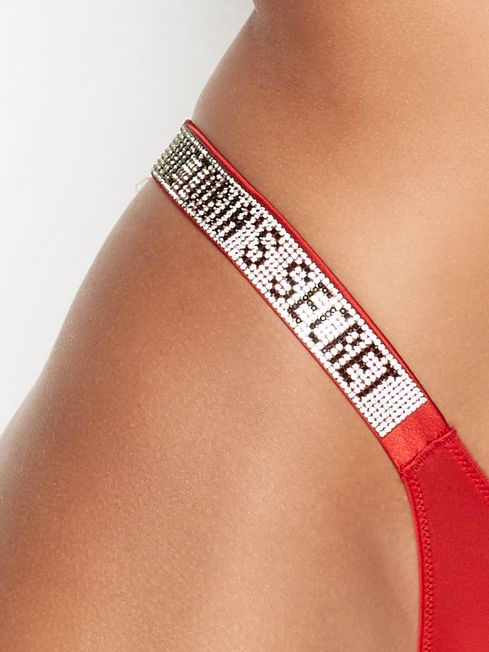 This barely there smooth thong dazzles with Victoria's Secret logo shine straps in glittering rhinestones.